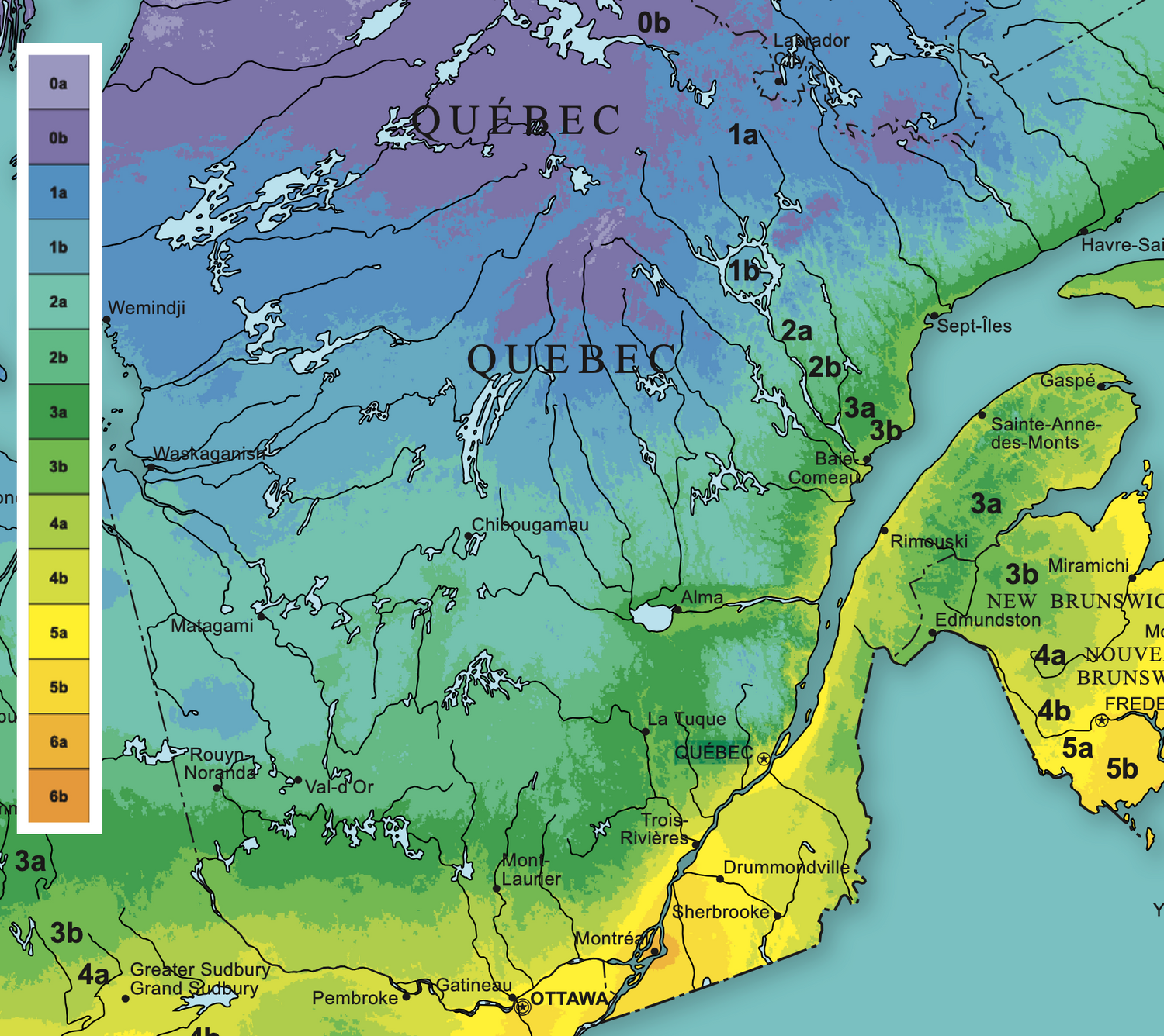 On remarque que les zones de rusticité au Québec vont de 0a à 6b. Pour connaitre votre zone de rusticité, cliquer sur le lien ici.