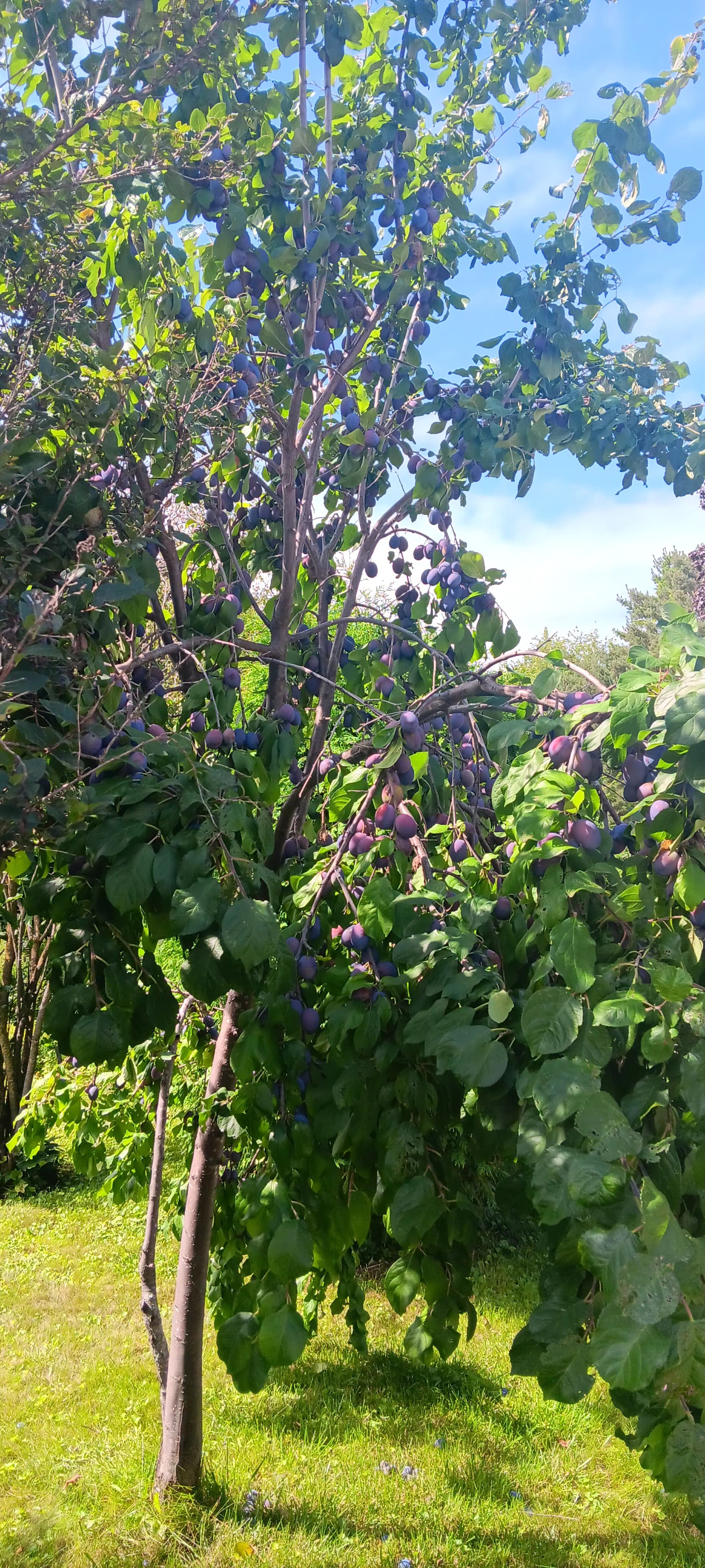 Damas bleue - Zone 4 : Cette variété de prunier européen produit des prunes bleues ovales. Elle est issue de semis du Bas St-Laurent. Elle est excellente pour manger fraîche, faire des confitures, des pruneaux ou des desserts. Son noyau est non adhérent. L'arbre est légèrement sensible au nodule noir.